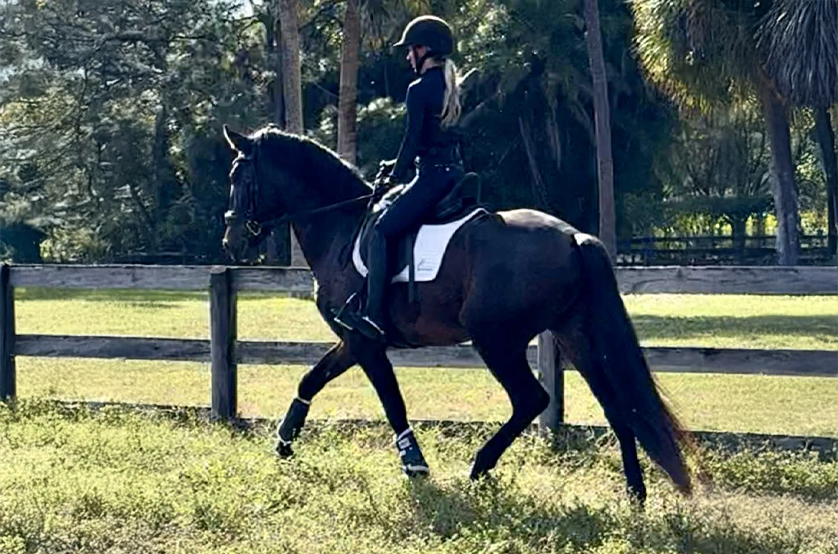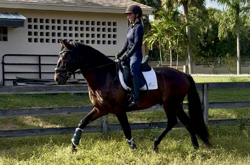2012 imported KWPN gelding standing 16.3 hands. Florida is schooling the PSG, and has a super talent for the changes and lateral work. He has three super gaits that are adjustable for the FEI levels. Florida has competed through Prix St Georges with scores of 68%